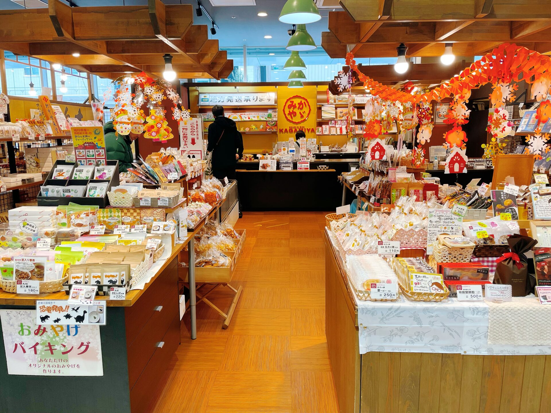 🌸おみやげ処 福井の地酒、恐竜グッズやお菓子などが揃っています。生もっちぷりんが人気です!