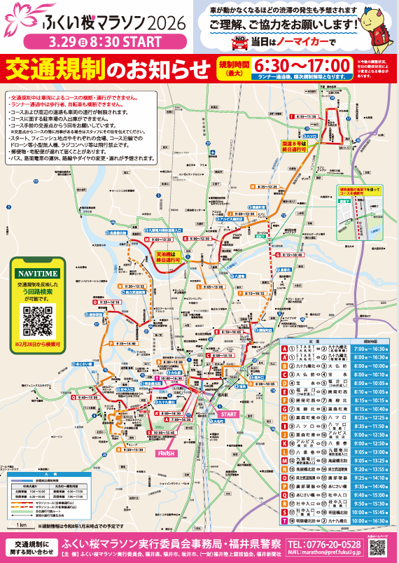 大会当日は、福井市内をおよび坂井市内で長時間の交通規制を実地します。