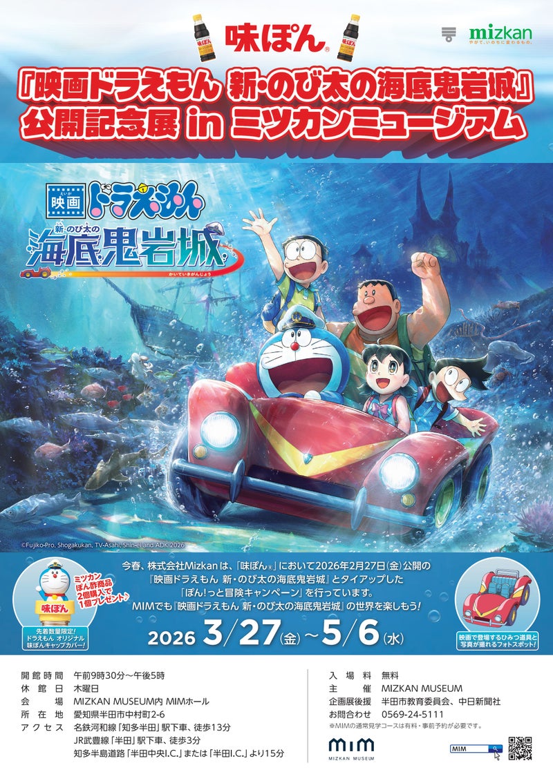 3月27日(金)~5月6日(水)までMIMホールにて「映画ドラえもん 新・のび太の海底鬼岩城」公開記念展 inミツカンミュージアム を開催中!