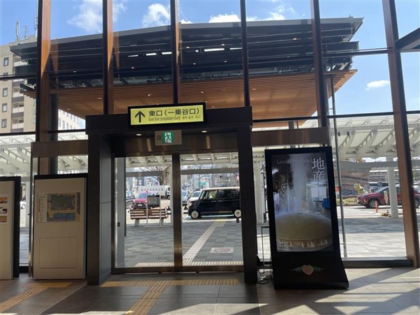 2.雲模様の柱がある場所が福井駅東口①番バス乗り場でございます。